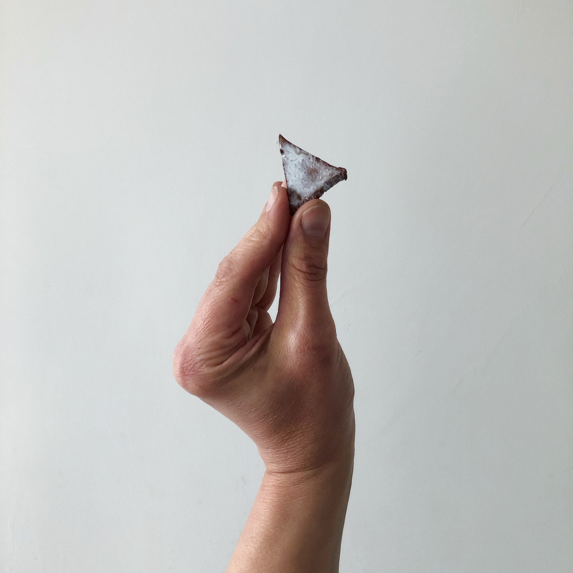 Handholds, 2019/20/21, fragments, leftovers and off-cuts of glazed terracotta and crank.