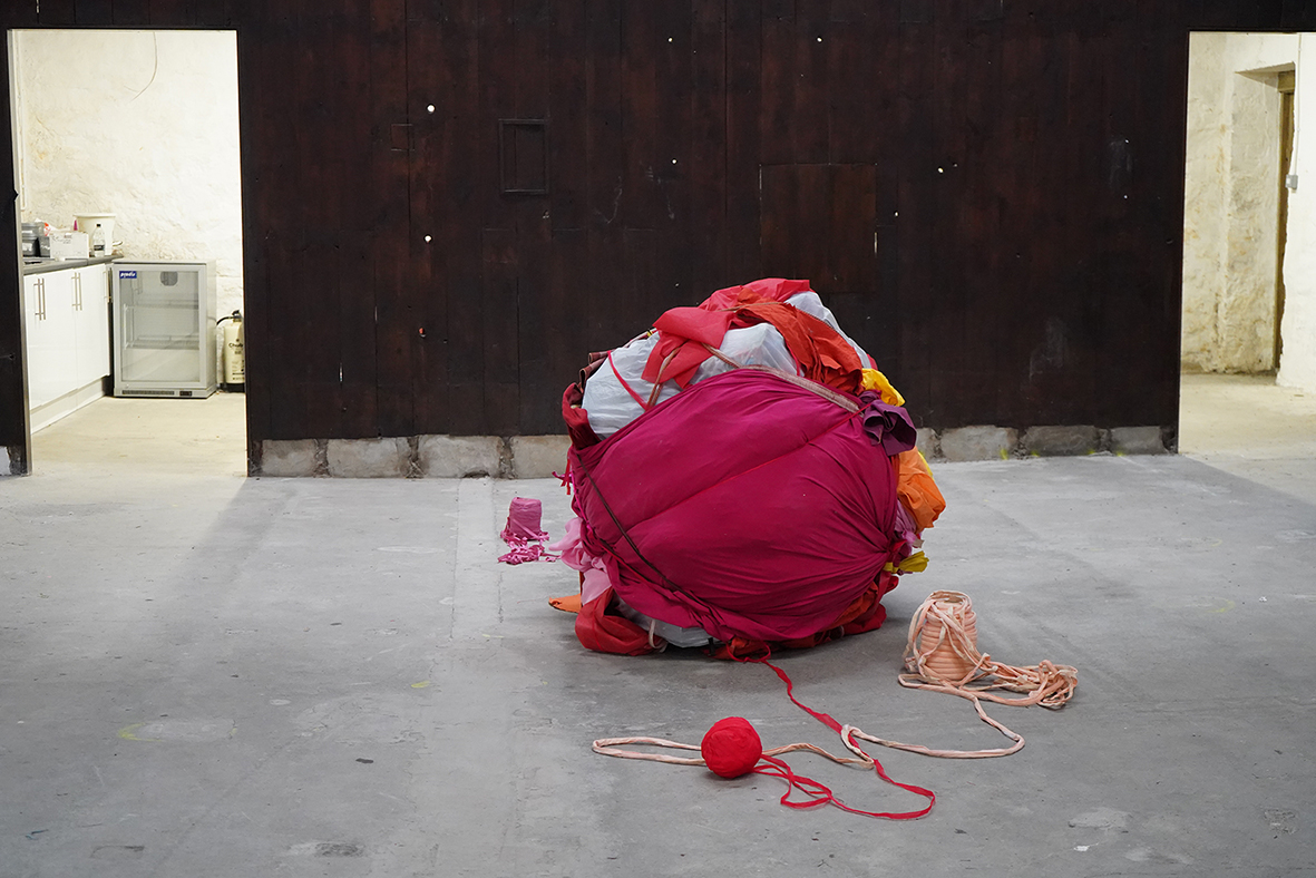 Maylya (Mye-lee-a, vb. to bind, envelop, wrap) is a performance to camera where the artist heaves, pulls and draws a sculpture into being. Binding together a collection of materials to create one mass, where the tension between elements is visible, as they work together to hold their form.